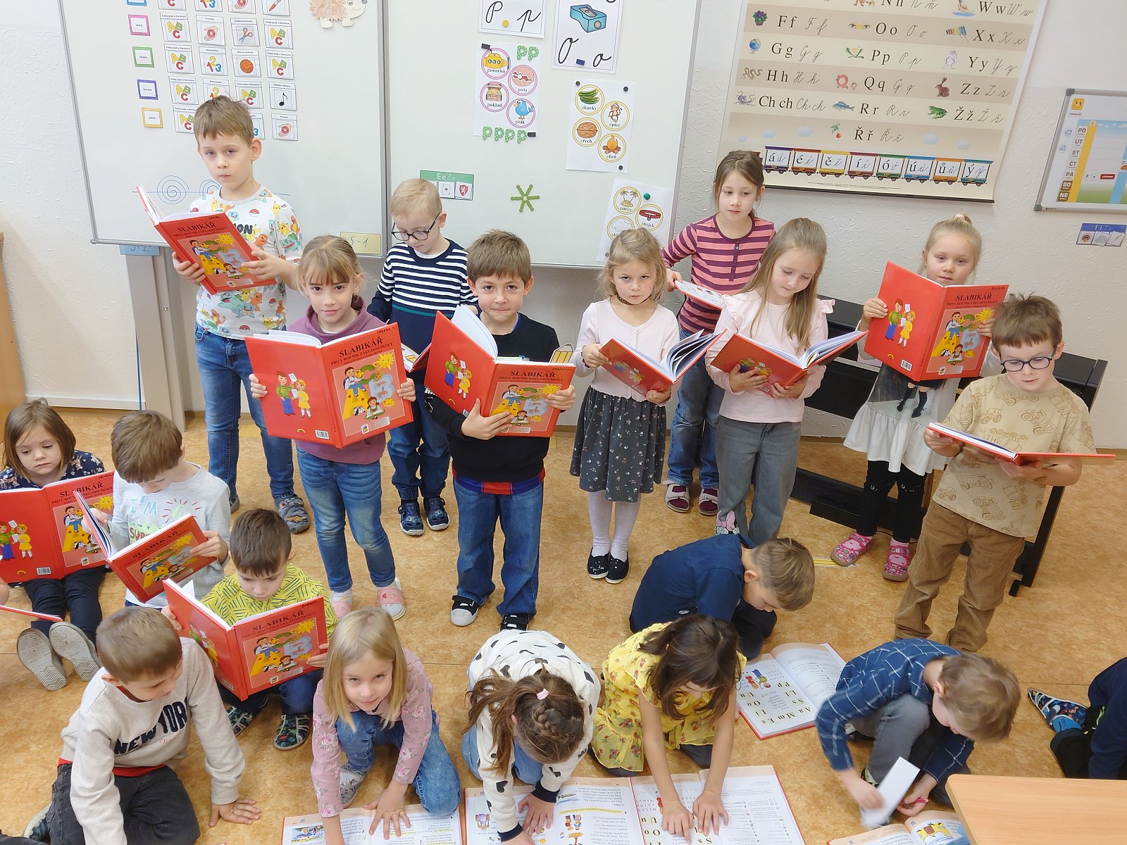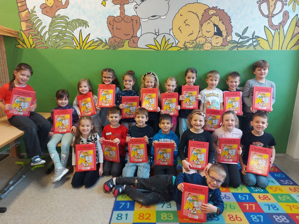 Uplynuly tři měsíce a naši prvňáčci slaví úspěch. Po ukončení první pracovní učebnice s názvem Živá abeceda se děti rozdělily do družstev a vydaly se za dobrodružstvím písmenek. Na připravených stanovištích předvedly získané vědomosti ve skládání slov, vyhledávání slabik, porovnávání tiskacích a psacích písmen nebo čtení krátkých vět. Jejich úsilí vše splnit na výbornou, odhodlání nic nevzdat a ukázat, co se již naučily se vyplatilo. Po splněných úkolech se žáčci 1. tříd dočkali svého Slabikáře. Tím si otevřeli další kapitolu ve vzdělání.