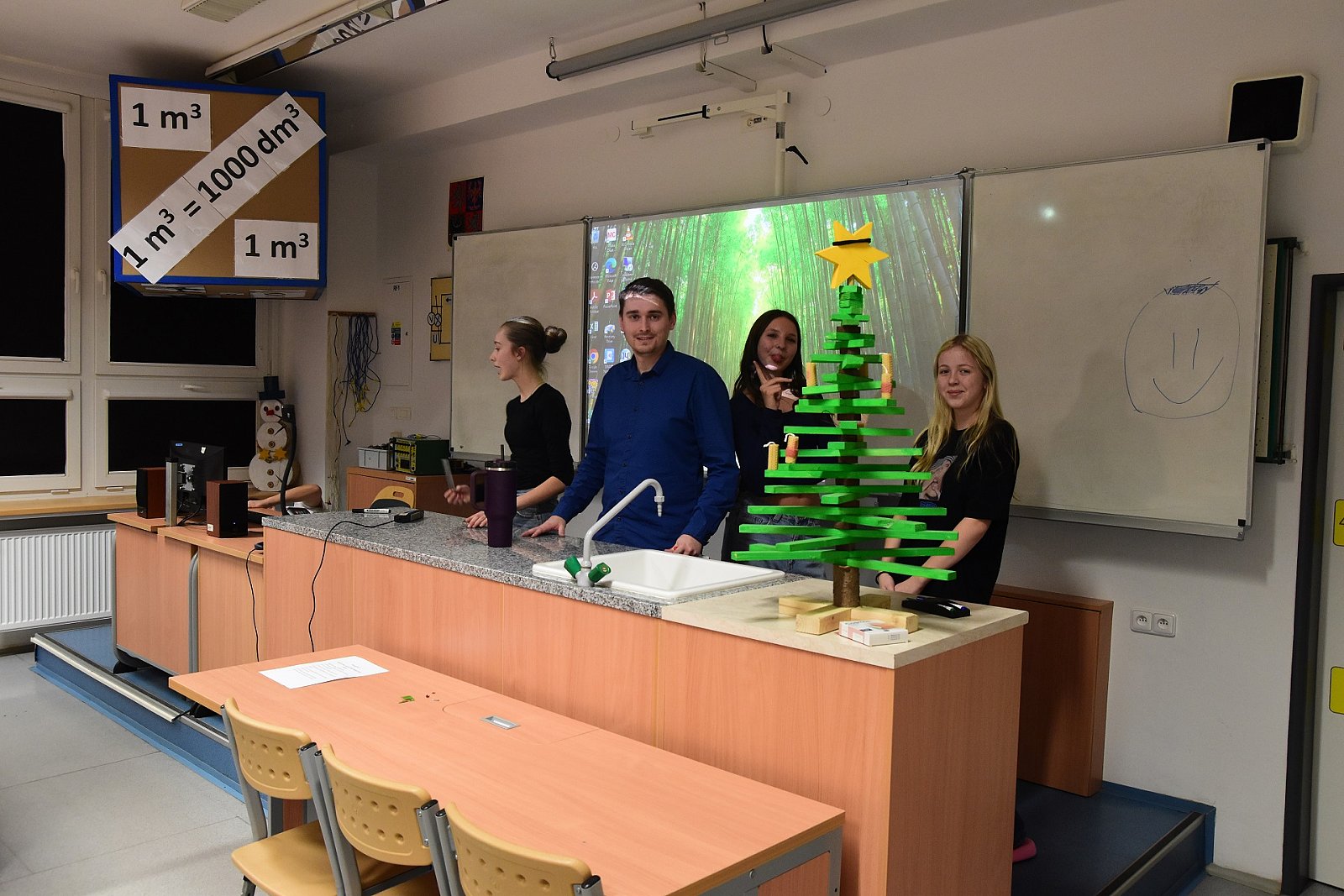 Děkujeme všem rodičům, žákům, bývalým zaměstnancům a přátelům naší školy, kteří nás navštívili 4.12.2025 na Den otevřených dveří. Rádi jsme se pochlubili odbornými učebnami, tělocvičnami, dílnami, družinou i vánočně vyzdobenou školou. Doufáme, že i připravený program ve třídách 1. stupně a v odborných učebnách se všem líbil. Ještě jednou, prostřednictvím fotek, můžete nahlédnout, jak se zdařila chemická show, práce v dílnách, zábava v tělocvičně a horolezecké umění, tisk na 3D tiskárně, banánové pokušení v kuchyňce, soutěž v cizích jazycích. Žákovský parlament zajistil tradičně občerstvení v kavárně školy.